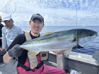 カンパチ 19.2キロ シマアジ ウメイロ ヒメダイ アカイサキ サバ ムロアジ ワラサ ルアーでヒラマサ など 会社の仲間で貸切船