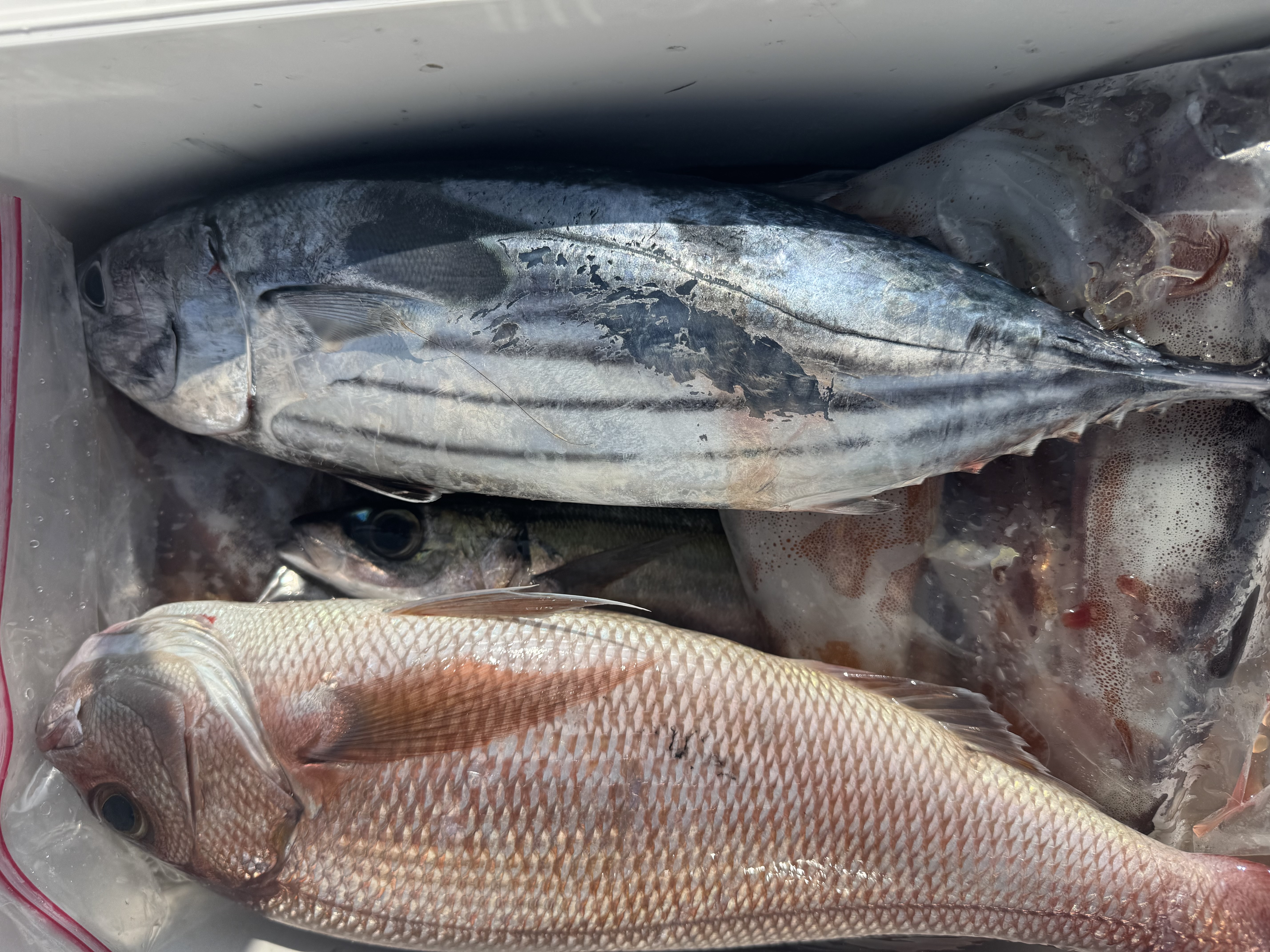 スルメイカ 〜30ハイほど 潮も良く反応あればかかりました。 9月いっぱいくらいを目安にスルメやる日もあります。 予定に出てこない日はやりません。 本カツオ まぐれでいました。 潮が澄んでくればきたらあいなぁと。 ヒメダイ ウメイロ イサキ サバ ムロ メジナ シマアジ オジサン 他